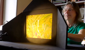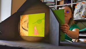 Elle a présenté le livre pour enfant sous forme de Kamishibaï** qu’elle a fait elle-même ainsi qu’un petit livre dont elle est co-auteur avec sa fille édité par « la fureur de lire » dont elle a donné un exemplaire à chacun des élèves. Elle en a profité pour leur expliquer le parcours d’édition. Les élèves travaillent cette année sur un projet de création et de présentation d’un livre pour enfant et de lecture au kamishibaï de planches créées par les élèves de l’option artistique, ils construiront également leur propre castelet.