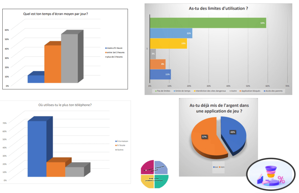 Les résultats du sondage ont été traités afin de réaliser des graphiques 📊, de tirer quelques conclusions et de les comparer à une enquête réalisée par l’ULB auprès de 1600 jeunes.