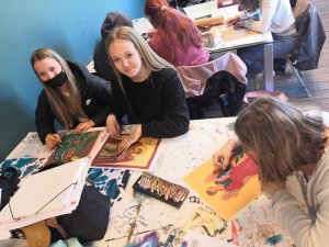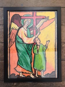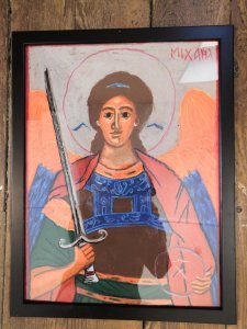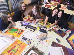 Les élèves de 3TQ Art et de 3ème de 4ème TT sciences sociales et éducatives ont dû choisir des icônes d’anges et les reproduire avec la technique du pastel à l’huile. Les élèves de 4ème et 5ème TQ Art ont quant à eux utilisé la technique de l’enluminure et créé également des interprétations plus modernes du thème.