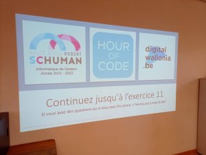 En novembre, trois étudiants en informatique de gestion de la Haute Ecole Robert Schuman sont venus à la rencontre de nos élèves de première dans le cadre du projet « Hour of code ».