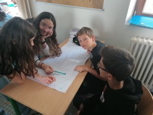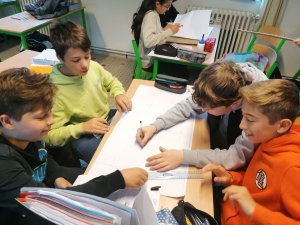 Ils ont ensuite été amenés à confronter leurs propositions à leurs camarades de classe, subdivisés en petits groupes, et dégager une proposition commune à mettre à l’échelle 1/20e.