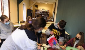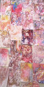 Pour apprendre le mélange des couleurs primaires et secondaires, les 3QA ont utilisé la technique du Suminagashi (墨流し – « encre coulante ») qui est un art décoratif qui consiste à réaliser des marbrures à l’encre sur papier.