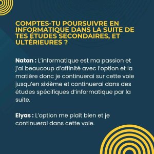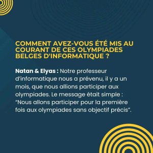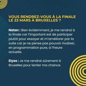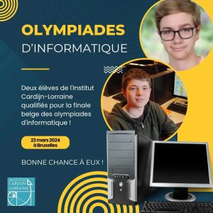 On en profite pour mettre à l’honneur deux élèves de l’Institut Cardijn Lorraine qui ont été sélectionnés pour la finale belge des olympiades d’informatique.