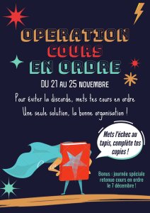 La semaine prochaine pour tous nos élèves sera lancée l’opération cours en ordre.