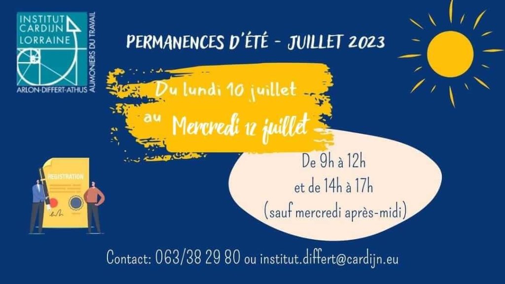 Notre équipe assure des permanences en cette première semaine de congé. Nous vous accueillerons du lundi 10 au mercredi 12 juillet 2023 de 9h à 12h et de 14h à 17h (sauf mercredi après-midi).