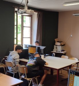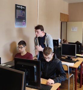 Afin de répondre à leurs questions et les aiguiller au mieux, les élèves de 4ème les rejoignent une fois par semaine pour répartir le travail, aider/corriger, et analyser leur avancement. Ce travail d’échange a permis aux élèves de 3ème de bénéficier des perfectionnements reçus en 4ème.
