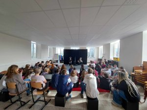 Ce mardi 10 octobre, nous avons reçu le Collectif Mad Cat Studio, mandaté par la Région wallonne, pour consulter nos élèves de 5ème et 6ème sur leur vision du monde en 2050.