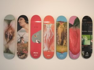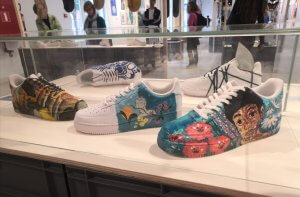 Ensuite, ils ont visité l’exposition hybride Street-Art, Skate Art et Sneakers dans les anciens abattoirs sous la visite guidée des artistes.