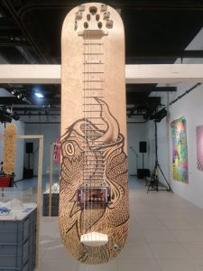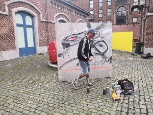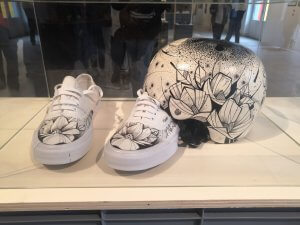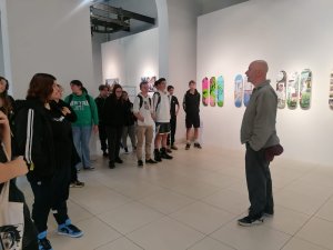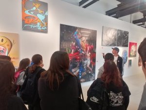Ensuite, ils ont visité l’exposition hybride Street-Art, Skate Art et Sneakers dans les anciens abattoirs sous la visite guidée des artistes.